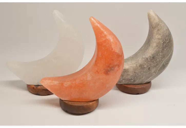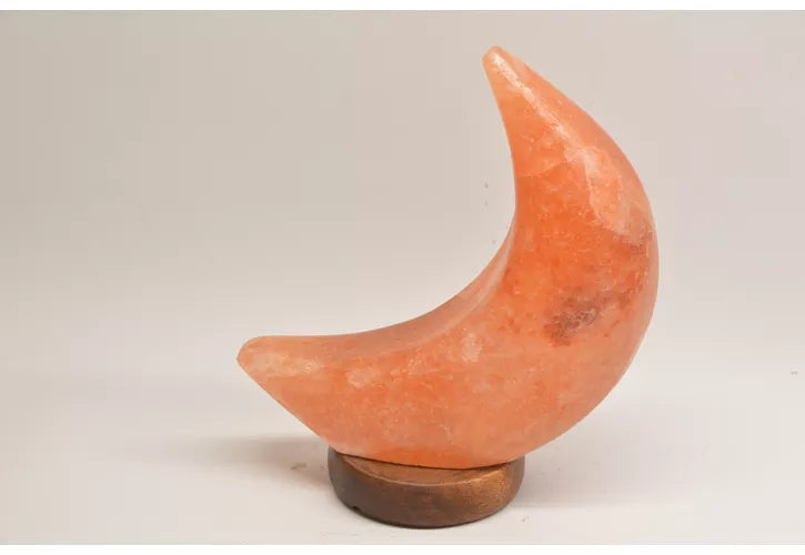 Deze Himalayazoutlamp met een prachtige vorm van een maan geeft een warm licht en staat prachtig in het interieur en kinderkamer.