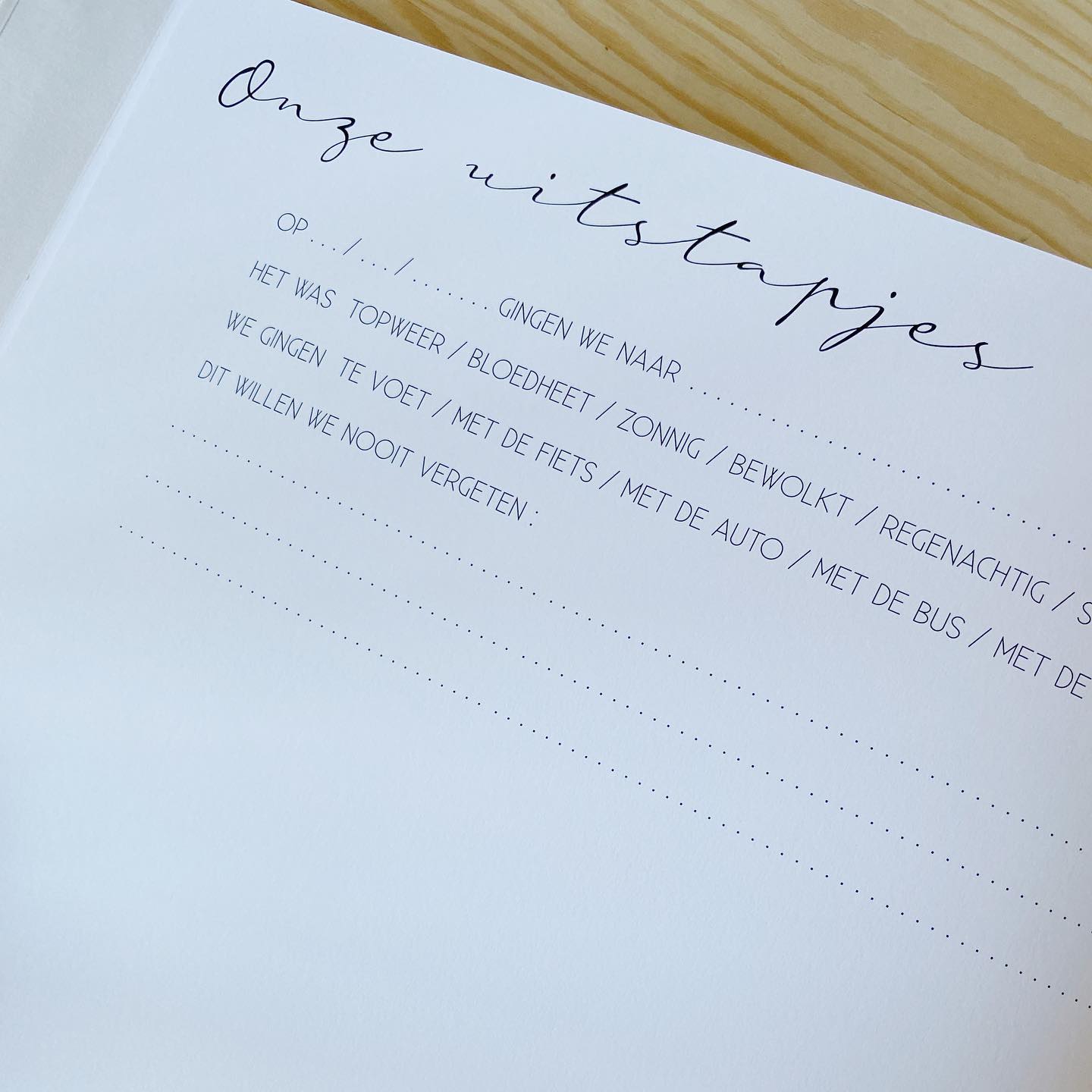 In het boek verzamelt en koesteren jullie alle fijne momenten samen. Jullie maken een bucketlist van de dingen die ze samen willen doen - en vinken alle dingen die erop staan één voor één af - maken een playlist met de liedjes die ze samen zingen, verzamelen de mooiste foto’s van uitstapjes en andere herinneringen, en nog zoveel meer. Een boek dat eerst van de grootouders is, dan liefdevol gedeeld wordt, en later doorgegeven wordt.