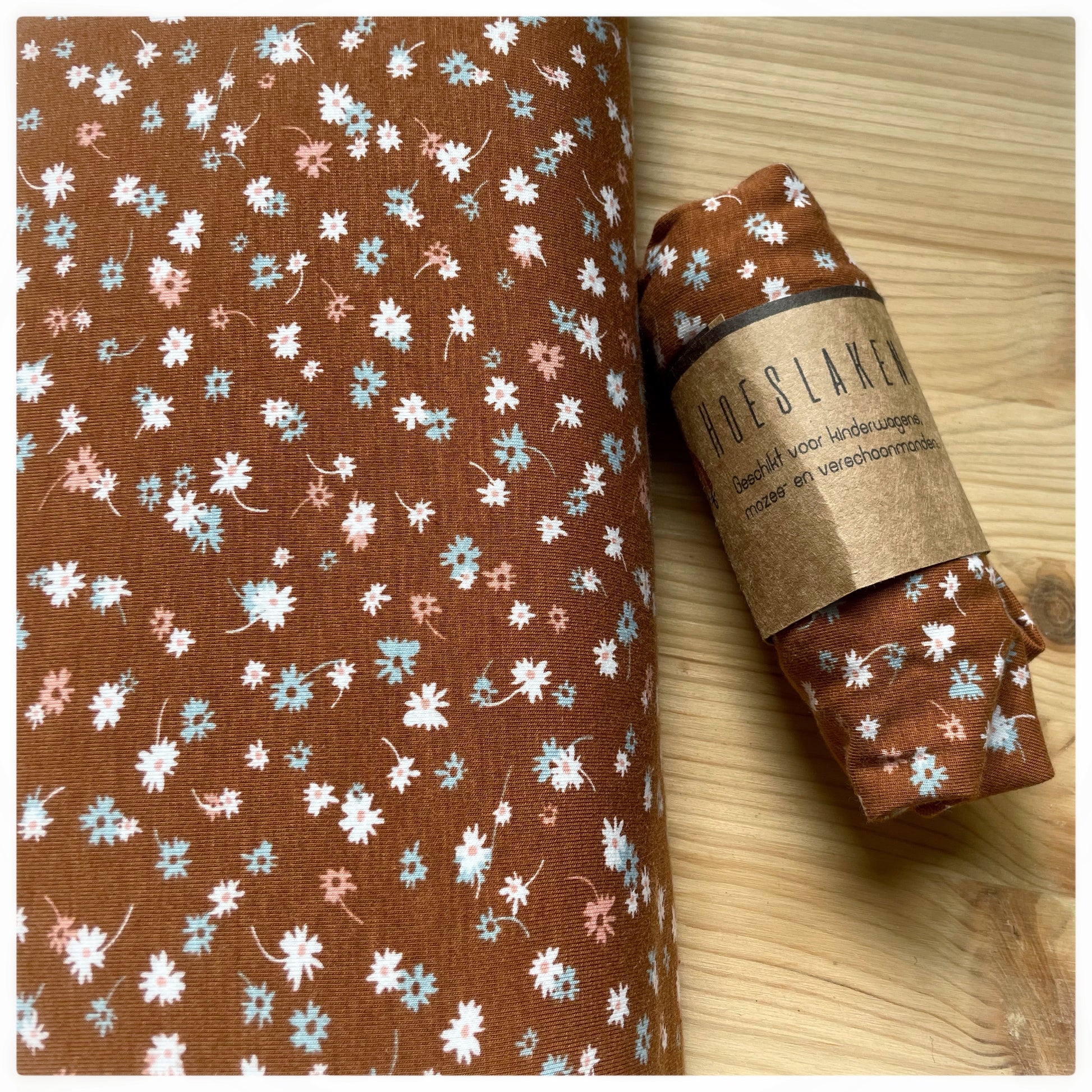 Hoeslaken verschoonmand/kinderwagen - bloemen caramel