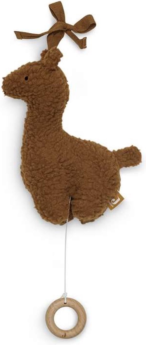 Trek maar aan het touwtje en de lama laat een liedje horen. Een muziekje kan rustgevend werken voor een baby. Deze leuke muziekhanger is een muziekdoosje in knuffelvorm De lama heeft een trekkoord met houten ringetje en aan de bovenkant van zijn hoofd zitten touwtjes om de hanger zo op te hangen dat je baby het lamaatje wel kan zien en horen ‘zingen’ maar het niet kan grijpen. Door de neutrale kleuren staat deze muziekhanger leuk in elke babykamer. De lama brengt het liedje 'Lullaby' ten gehore en dit speelt ongeveer 60 seconden per keer af. Vast lang genoeg om jouw baby in slaap te krijgen? Als je het elke dag herhaalt, wordt het een slaapritueel en daarmee een herkenning om te gaan slapen. Tip: speel het muziekje regelmatig vlakbij jouw zwangere buik en je zult zien dat het vertrouwd en rustgevend is voor jouw kleintje als het net geboren is. Deze muziekhanger is daarom een leuk zwangerschapscadeau. Ook als kraamcadeautje zal het in de smaak vallen.