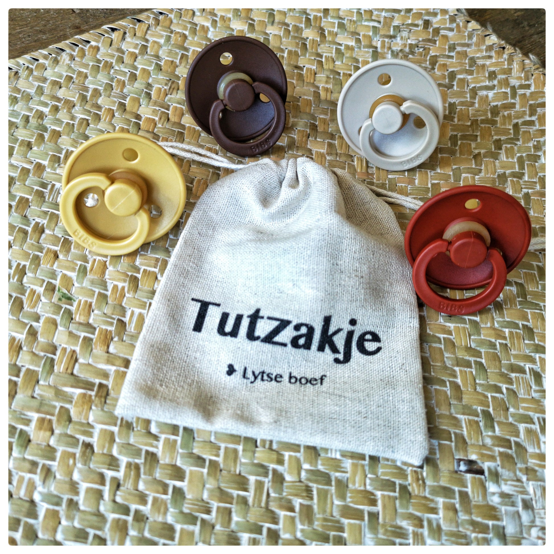 Het is een mix van ronde natuurrubber spenen van het merk Frigg en/of Bibs. Ze hebben allebei de ronde flexibele vorm tut.